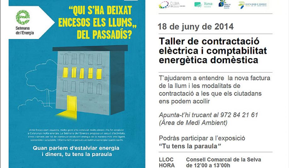 El Consell Comarcal de la Selva ha organitzat a Santa Coloma de Farners un taller el proper dimecres 18 de juny, de 12 a 1, sota el títol "Taller de contractació elèctrica i comptabilitat energètica domèstica".