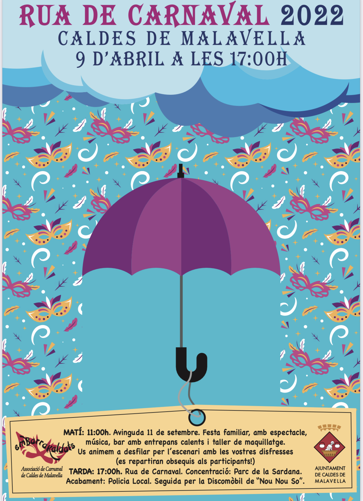 L’Ajuntament de Caldes de Malavella en col·laboració amb l’entitat Associació de Carnaval de Caldes de Malavella Embarrakaldats, organitzen a través de la Regidoria de Festes la Rua de Carnestoltes 2022.