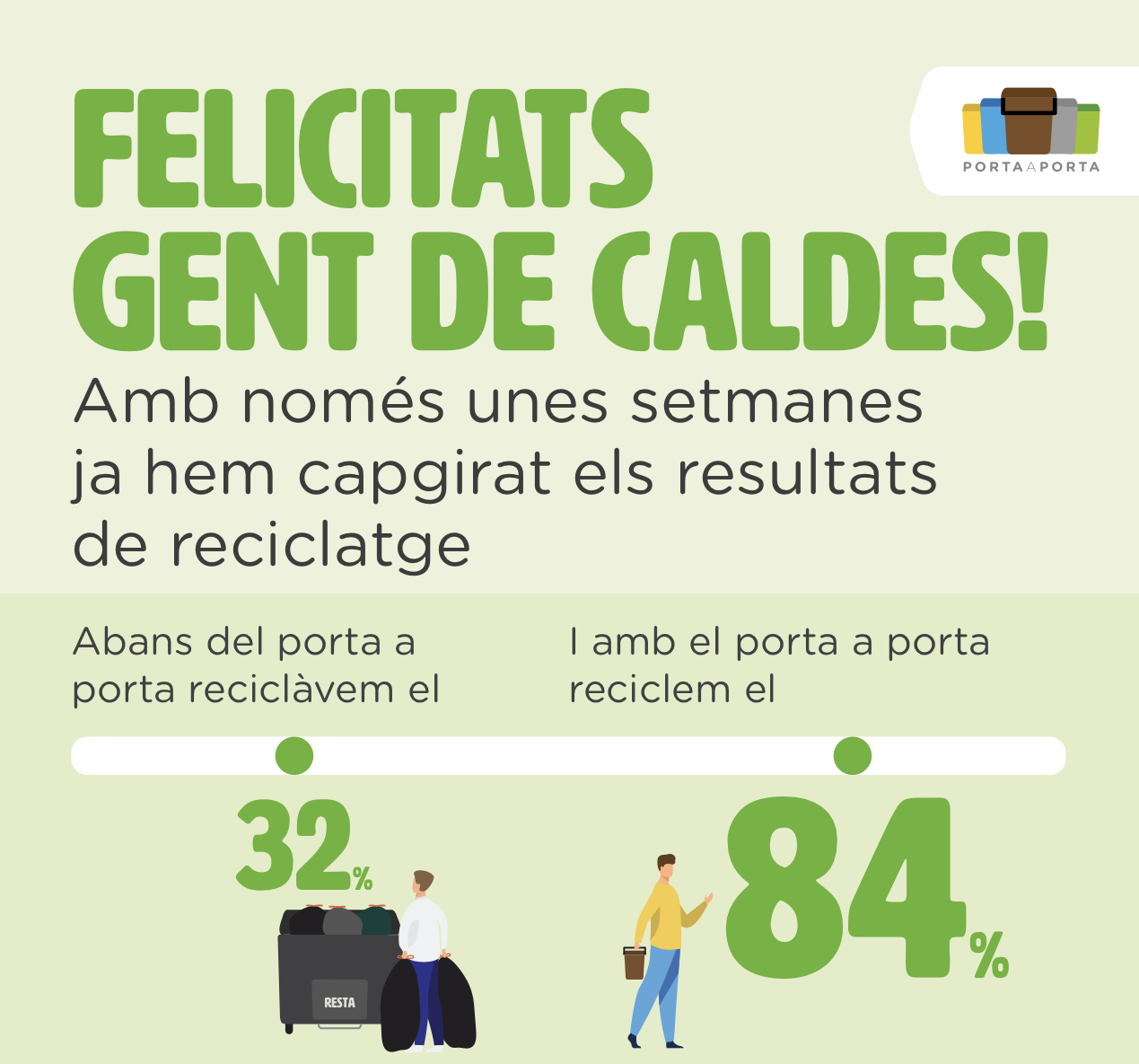 Amb el lema “Felicitats gent de Caldes”, el Consell i l’Ajuntament han donat a conèixer les primeres xifres del nou sistema de recollida de residus