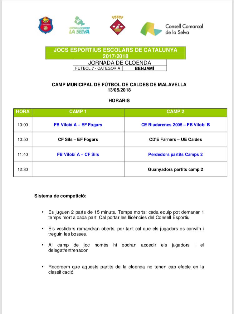 12 h · CF Sils B – Prebenjamí B UE Caldes