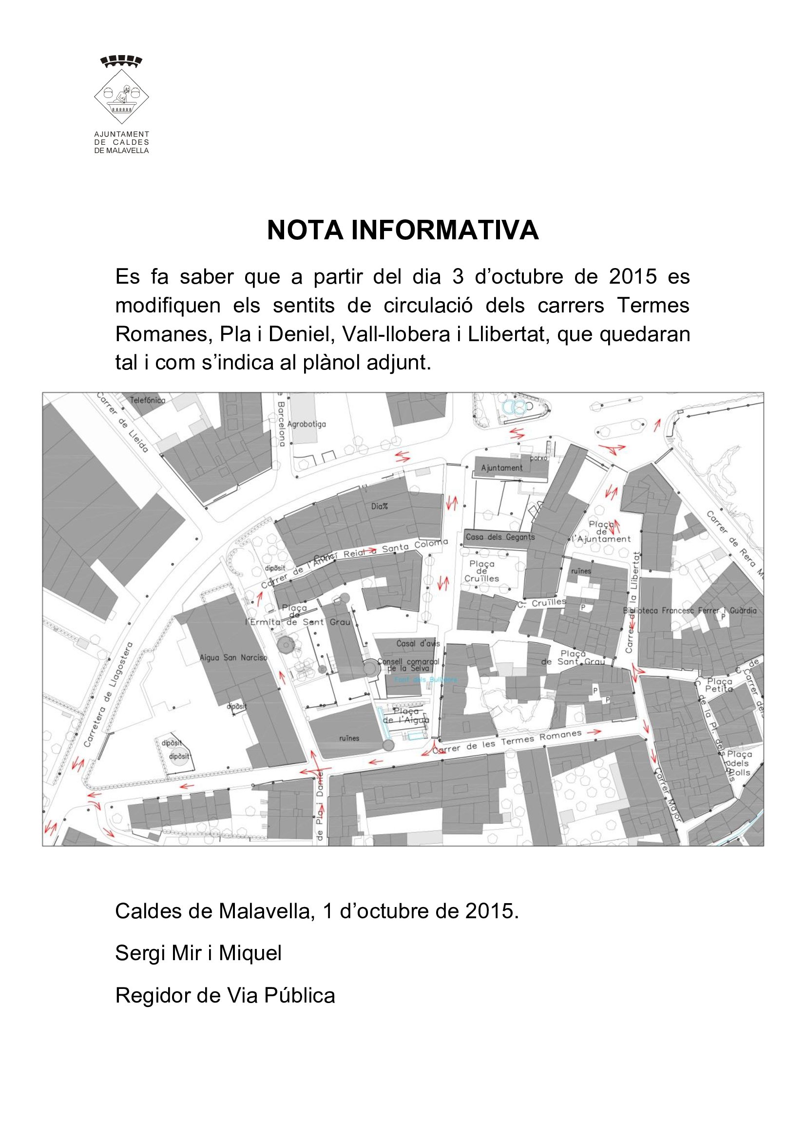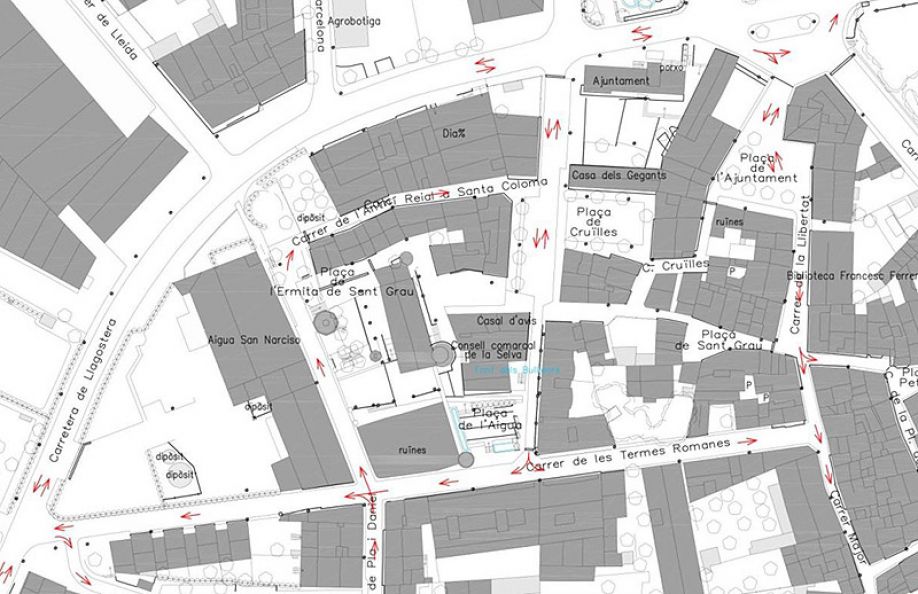 A partit del dissabte 3 d'octubre es modificaran els sentits de circul·lació amb cotxe als carrers Termes Romanes, Pla i Daniel i Llibertat de la manera com es presenta en el mapa:
