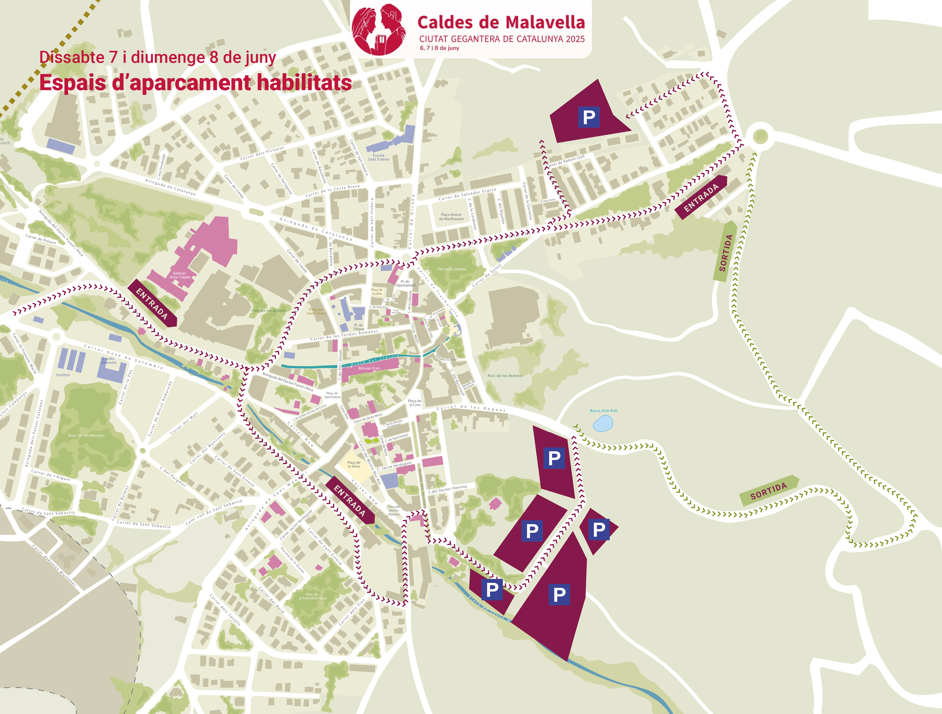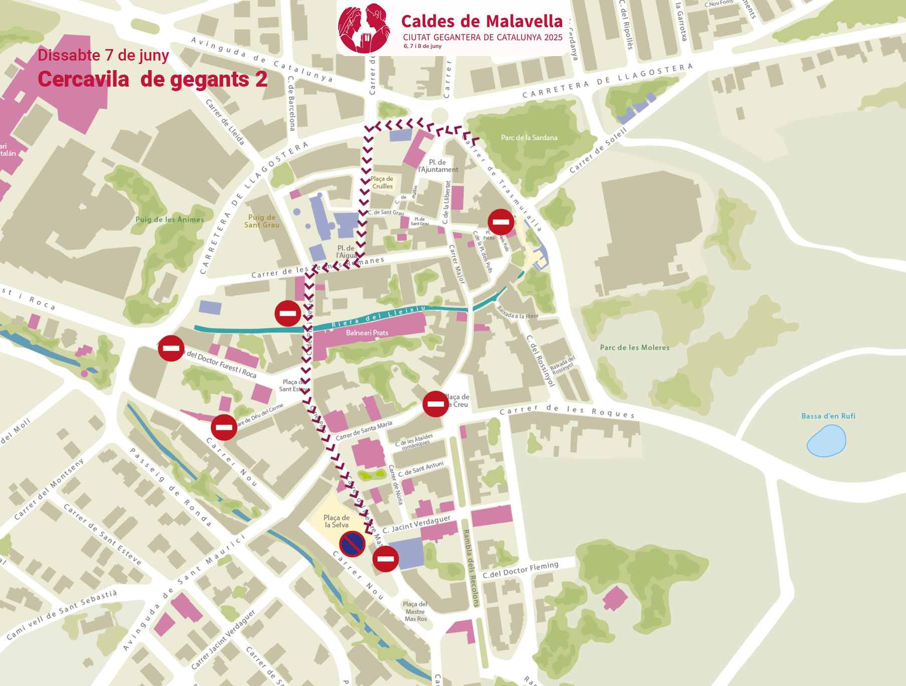 Amb motiu de la celebració de la Ciutat Gegantera de Catalunya 2025 a Caldes de Malavella, els dies 6, 7 i 8 de juny, s’aplicaran restriccions de mobilitat i estacionament als carrers afectats pels actes.