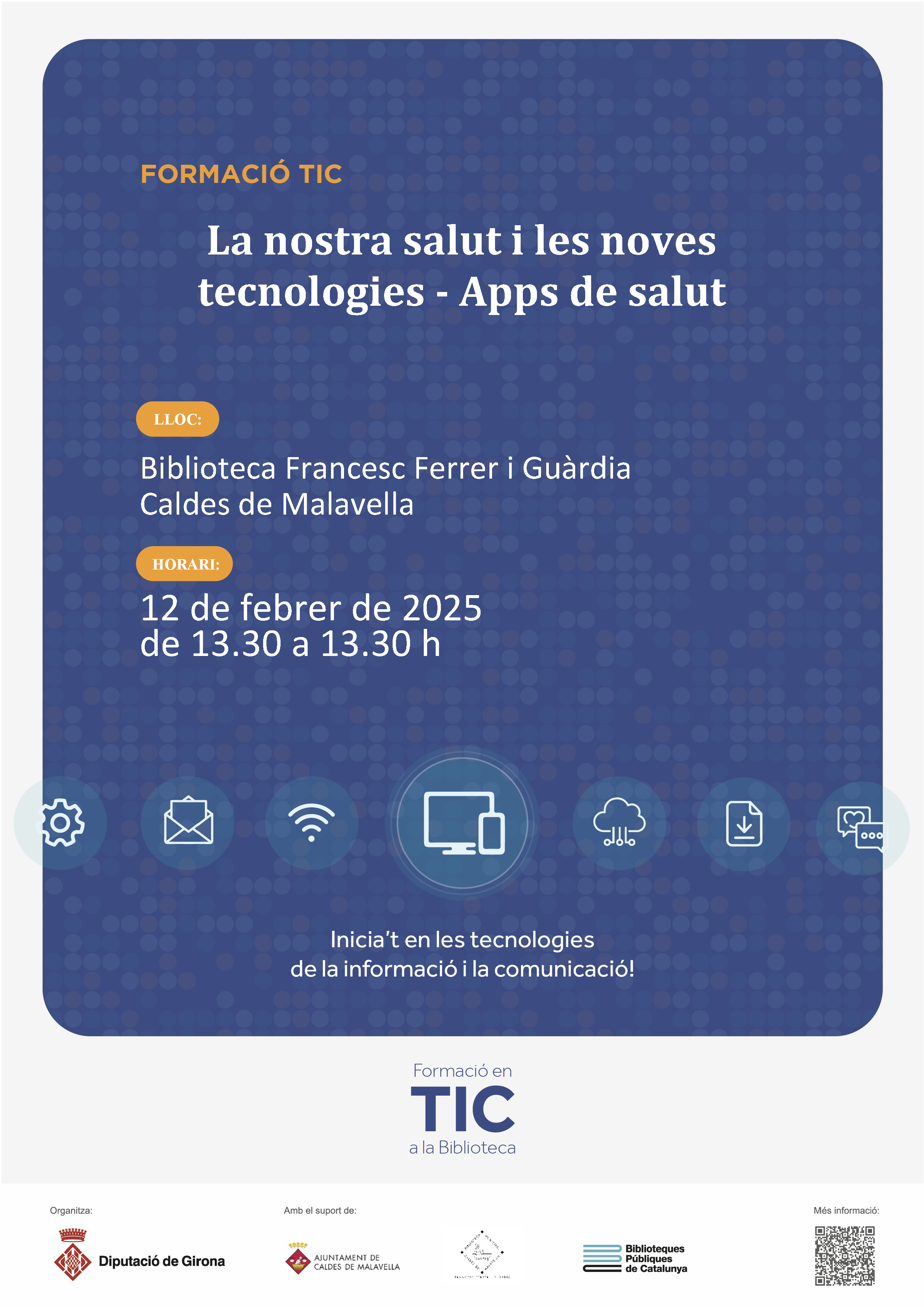 Aquest febrer, continuem apostant per apropar les noves tecnologies a la ciutadania amb un nou taller pràctic a la biblioteca. Aquesta vegada, el focus serà la salut i les aplicacions mòbils que poden millorar el benestar diari dels usuaris.