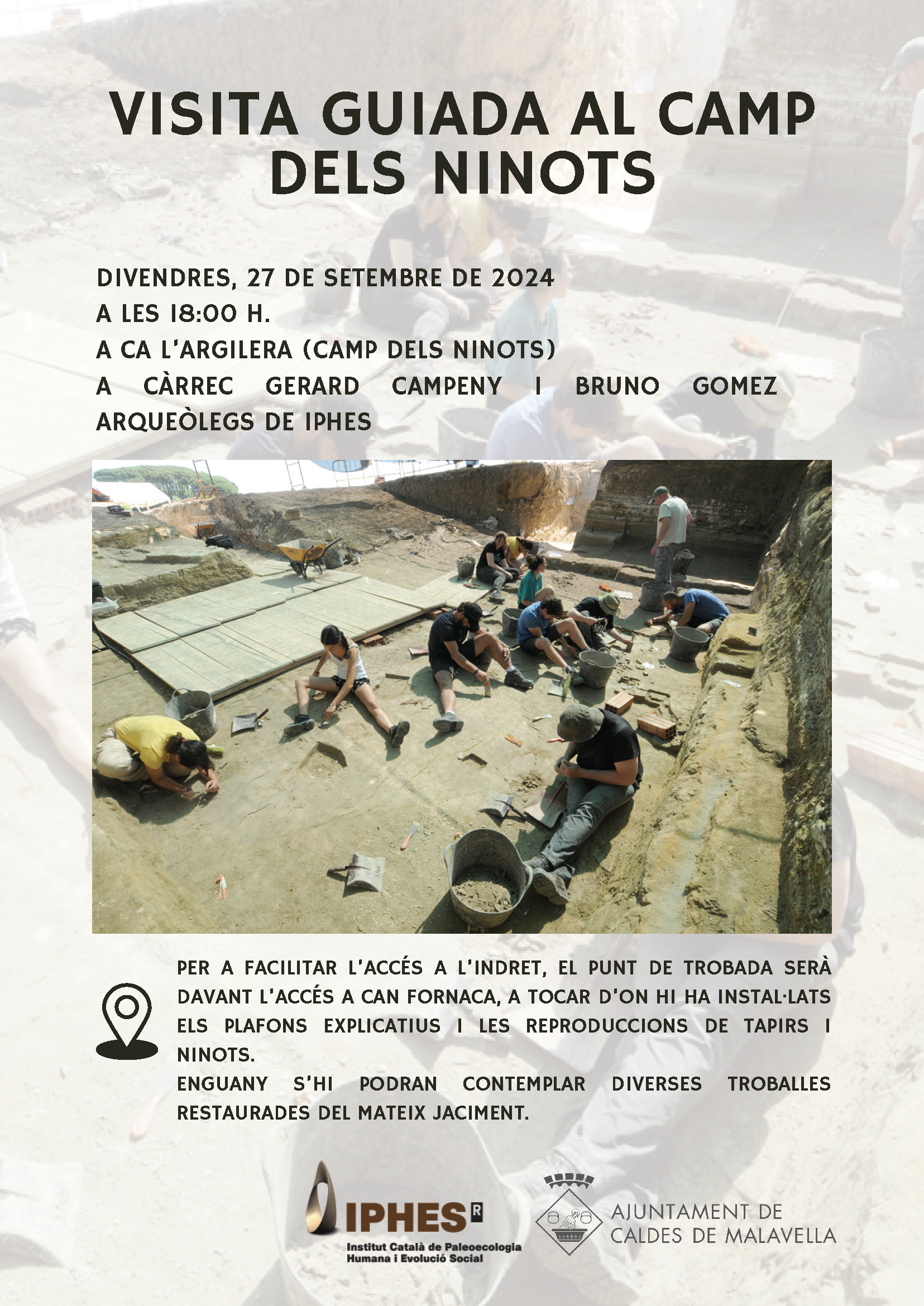 L’Institut Català de Paleoecologia Humana i Evolució Social organitza, el 27 de setembre, una visita guiada al Camp dels Ninots, les formacions al terreny del volcà extint de Caldes de Malavella. Els arqueòlegs Gerard Campeny i Bruno Gómez desvetllaran els secrets del jaciment i explicaran com i quan es va crear. Ho faran a les 18 hores, des de Ca l’Argilera. Per facilitar-hi l’accés, el punt de trobada serà davant de Can Fornaca, a tocar d’on hi ha instal·lats els plafons explicatius i les reproduccions de tapirs i ninots.