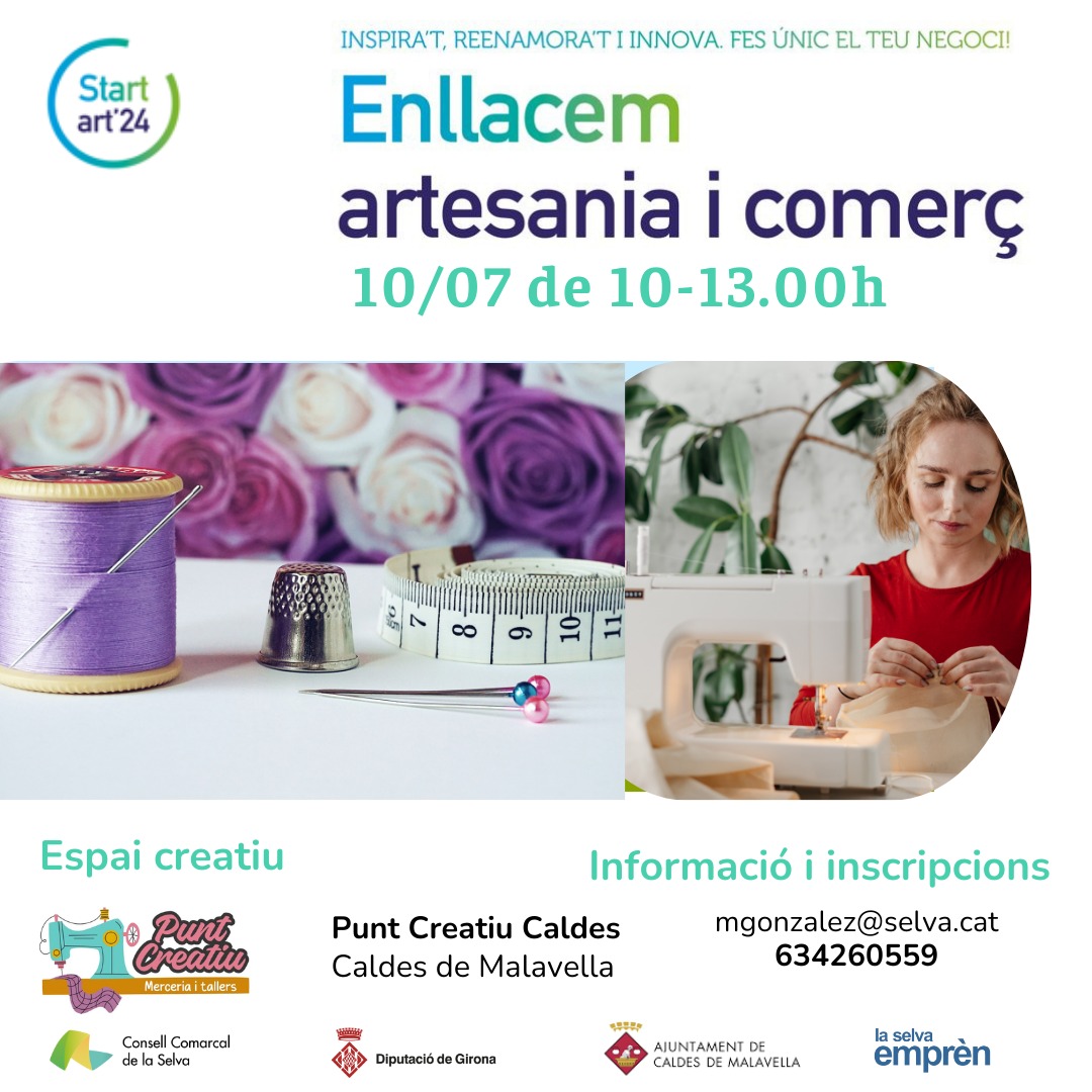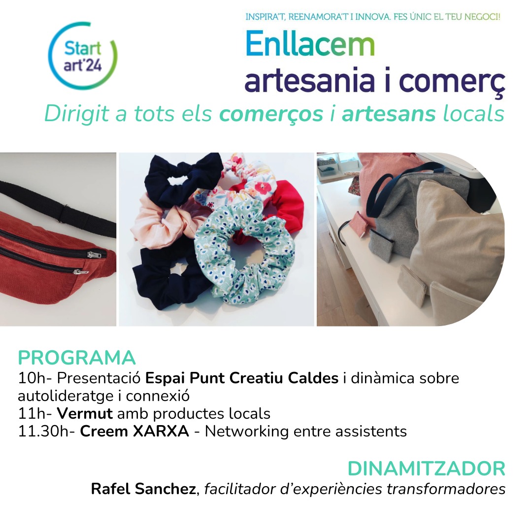 El pròxim dimecres, 10 de juliol de 2024, tindrà lloc l'esdeveniment "Enllacem artesania i comerç" organitzat pel Servei de dinamització empresarial de Caldes de Malavella i que compta amb el suport de la Diputació de Girona. La jornada es durà a terme des de les 10 fins a les 13 h al Punt Creatiu de Caldes, dinamitzat per Rafael Sanchez, facilitador d'experiències transformadores.