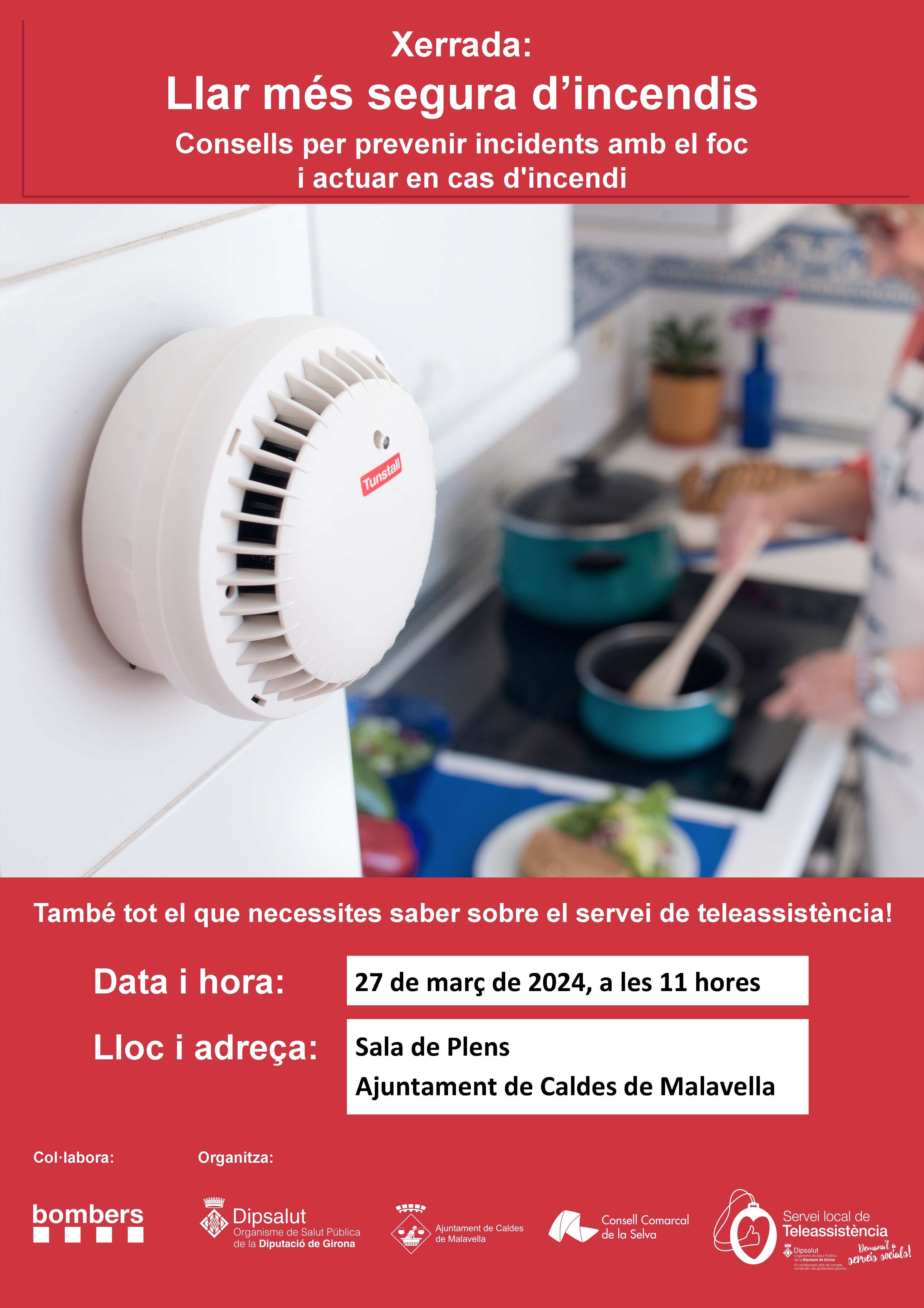 És una activitat organitzada per la Diputació de Girona, l’ajuntament, el Consell Comarcal de la Selva i el Servei Local de Teleassistència, amb la col·laboració dels Bombers, que seran els encarregats d’explicar què cal fer quan detectem un inici de foc a la llar i quins actuacions són les més efectives i segures.