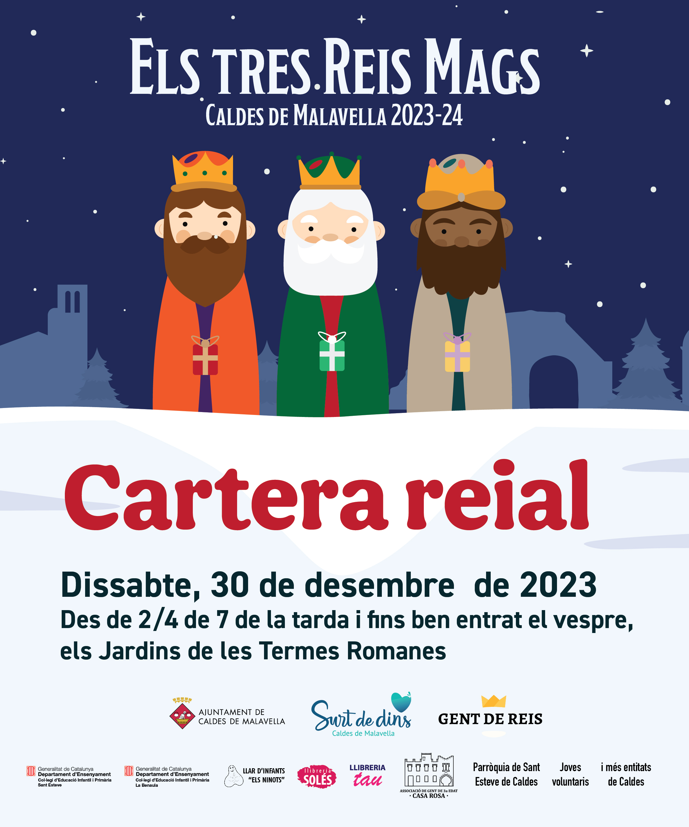 El proper dissabte, dia 30 de desembre, les nostres Carteres reials arribaran a partir de 2/4 de 7 de la tarda als Jardins de les Termes Romanes, on s'encarregaran de recollir totes les cartes que els petits i les petites de Caldes vulguin portar.