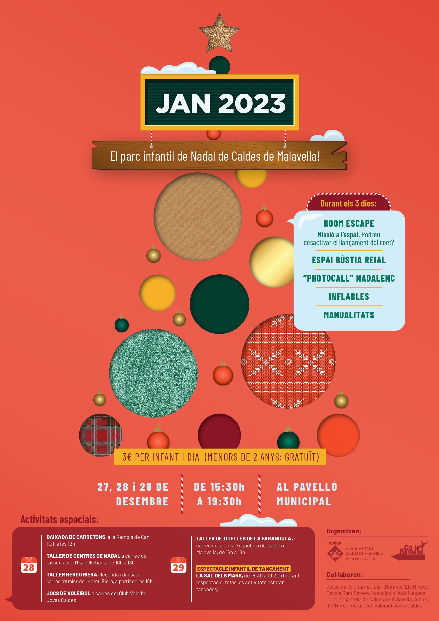 Hi trobareu també una Bústia Reial per poder-hi dipositar les cartes sense haver de passar per les Carteres reials i que quedarà instal·lada primer en el Parc Infantil de Nadal JAN 2023 i, després del dissabte 30, a l'interior de l'Espai Aquae (Castell de Caldes, c/ Sant Grau, 23) en horari d'obertura del referit espai (de dimecres a divendres, de 10 a 13 h i de 17 a 19 h. Diumenges de 10 a 13 h. 1 i 2 de gener tancat).