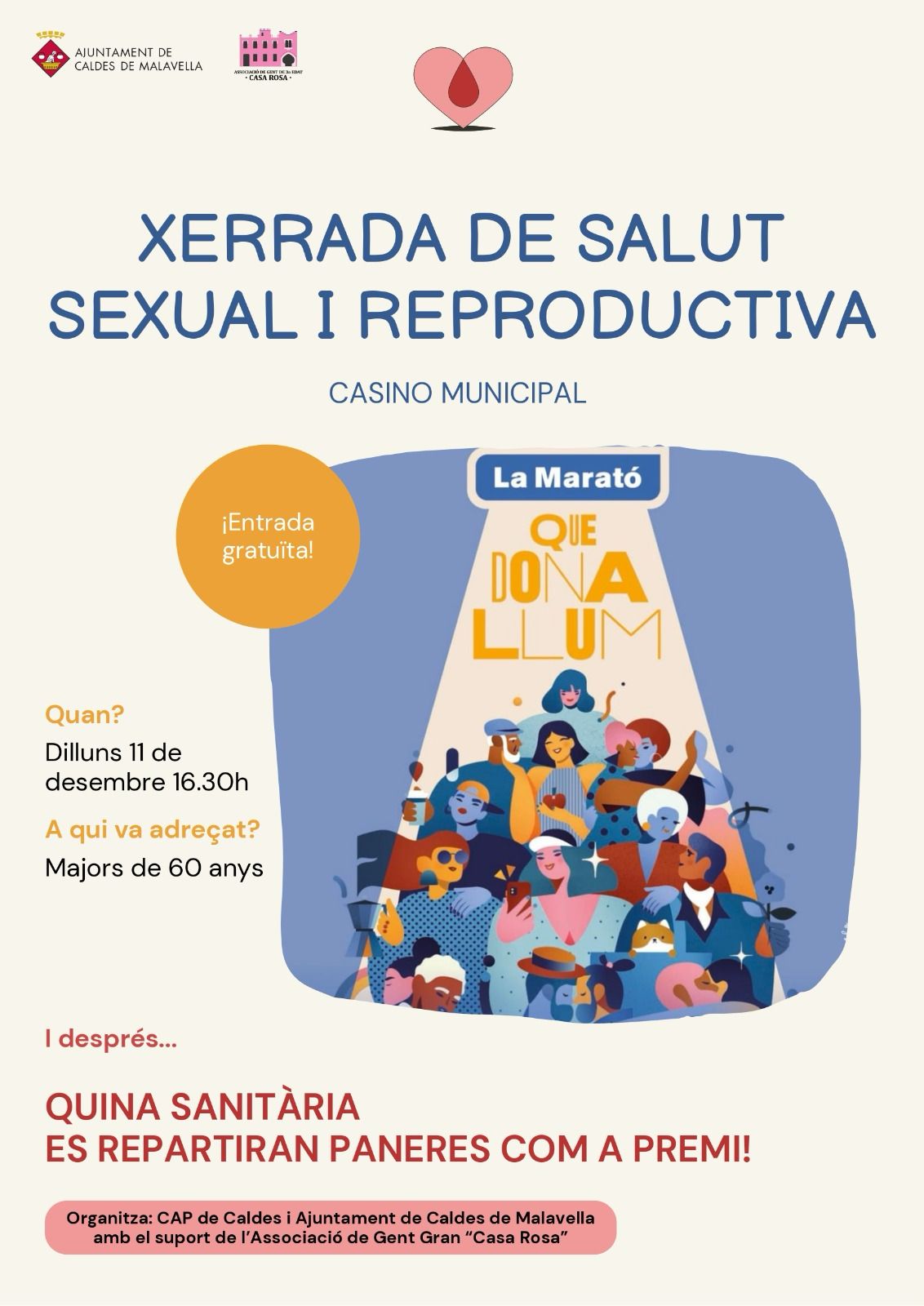 El Casino Municipal acollirà una xerrada amb motiu de La Marató de TV3, enguany dedicada a la salut sexual i reproductiva. Serà l'11 de desembre, a les 16.30 hores. La xerrada anirà adreçada a majors de seixanta anys i és organitzada pel CAP de Caldes i l'Ajuntament amb la col·laboració de l'Associació de Gent Gran Casa Rosa.