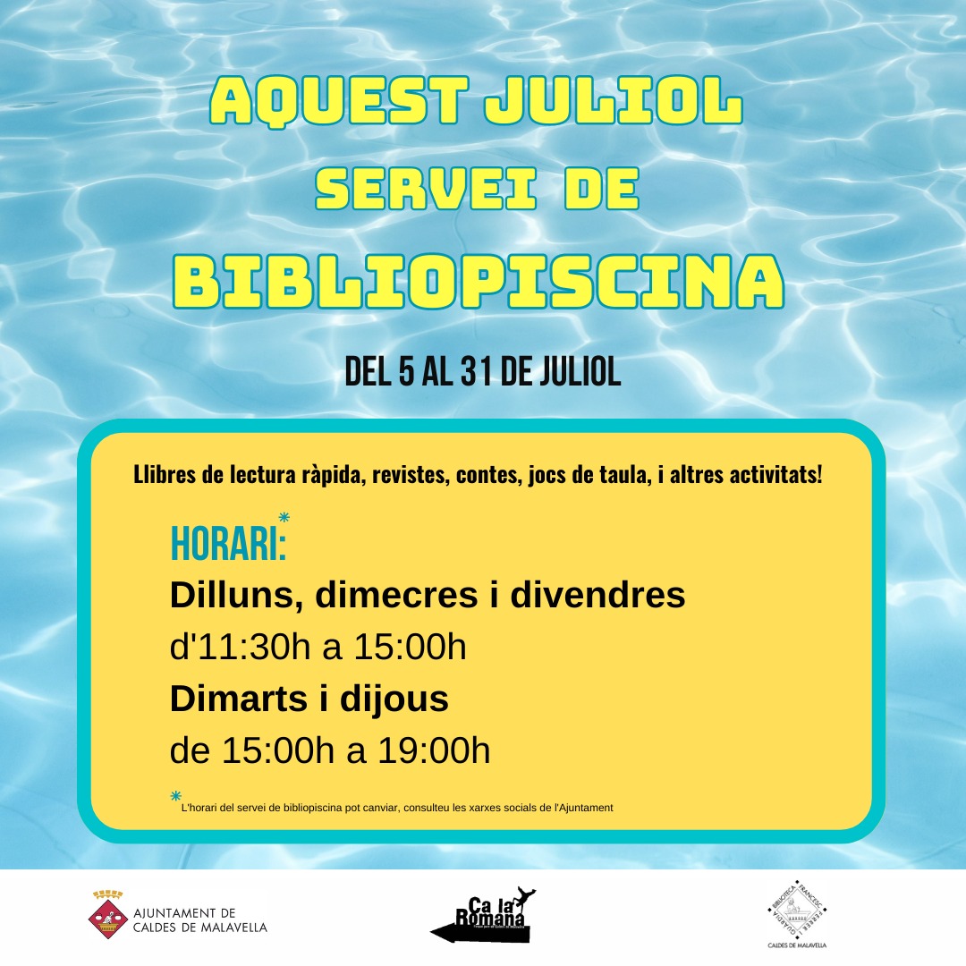 La Biblioteca es trasllada a la Piscina municipal per tal d'oferir als seus usuaris i usuàries la possibilitat d'apropar-se als diferents fons de la Biblioteca a partir de lectures refrescants, oferint una selecció per a totes les edats tant d'actualitat com de literatura d'imaginació, revistes, còmics, contes, jocs i novel·les.