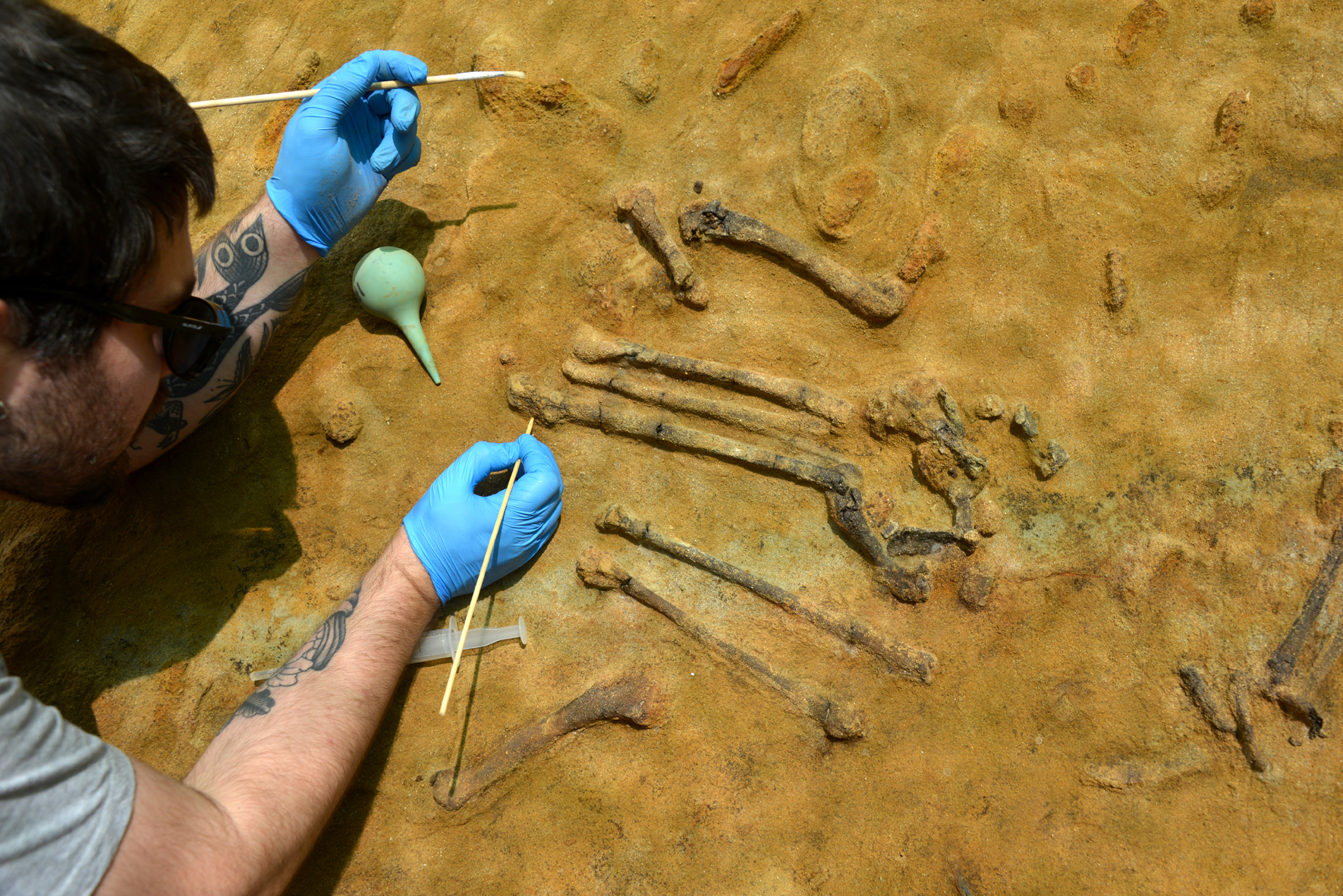 Tarragona, 7 de juny de 2023. Els treballs d’excavació que des del 15 de maig i fins el pròxim 9 de juny porta a terme l’Institut Català de Paleoecologia Humana i Evolució Social (IPHES-CERCA) al jaciment del Camp dels Ninots (Caldes de Malavella, Girona) han posat al descobert per primera vegada l’esquelet complet d’una au aquàtica de gran tamany de 3,1 milions d’anys d’antiguitat. L’esquelet es troba en un excel·lent estat de conservació i en connexió anatòmica; és a dir, amb tots els ossos en el lloc on els correspon. Després de la seva identificació, l’equip de treball ha extret les restes per ser traslladades al laboratori de restauració de camp situat a l’Espai Aquae de Caldes, ja que és un material molt fràgil i no pot estar exposat a l’intempèrie. Aquests treballs de conservació i restauració continuaran a les instal·lacions de l’IPHES-CERCA per tal d’iniciar el seu posterior estudi.