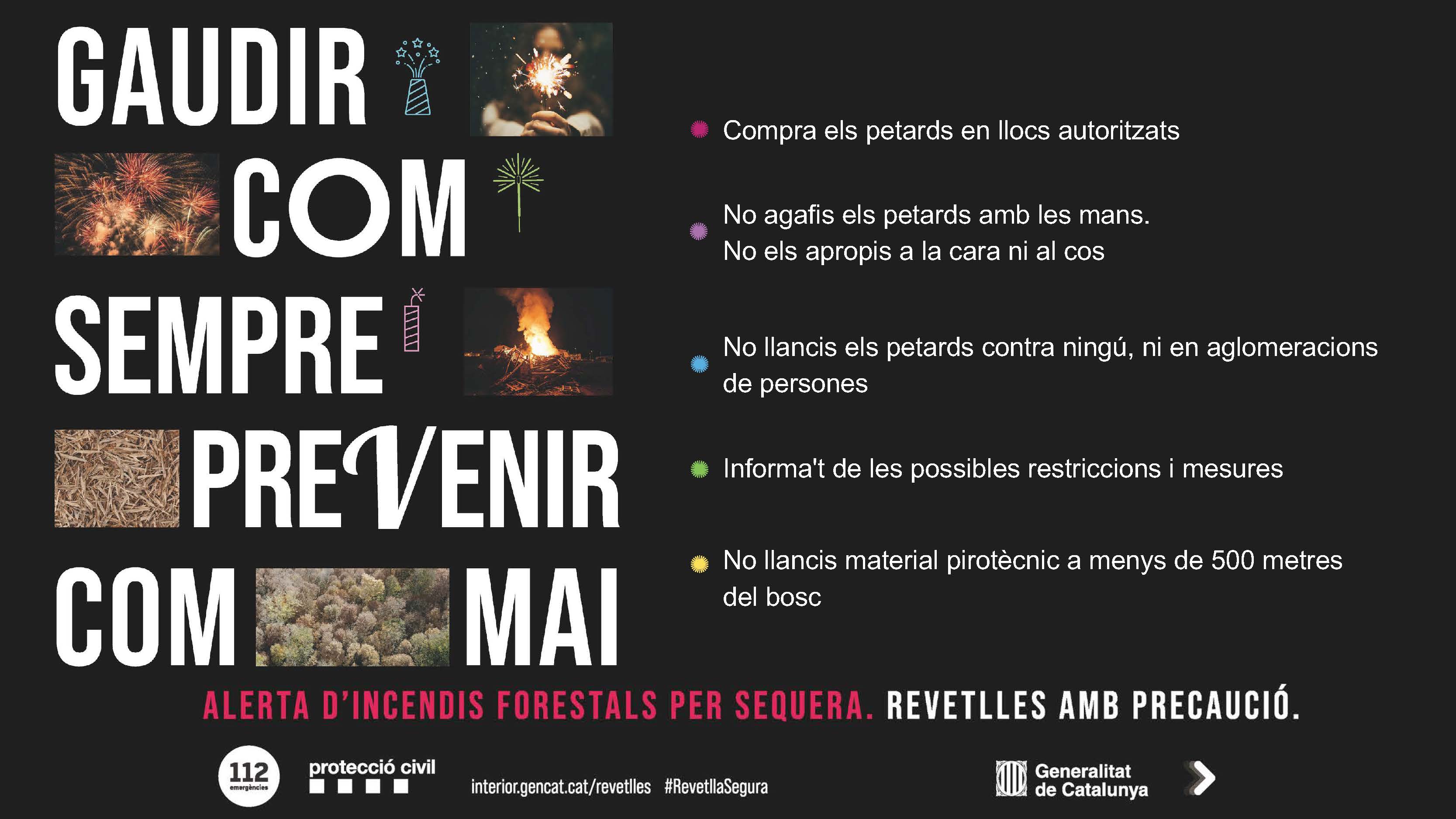 Les altes temperatures d’aquests dies fan incrementar el risc d’incendi i, per tant, caldrà estar més atent que mai als consells relacionats amb petards i fogueres.