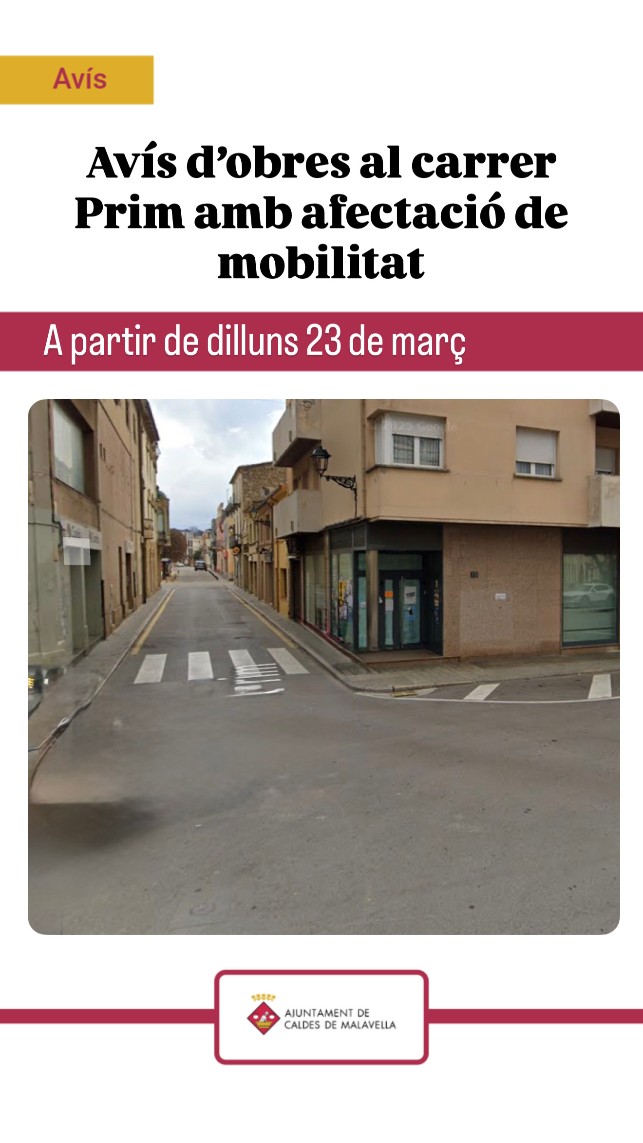 Obres de reparació de l’embornal del carrer Prim a partir del dilluns 23 de març
