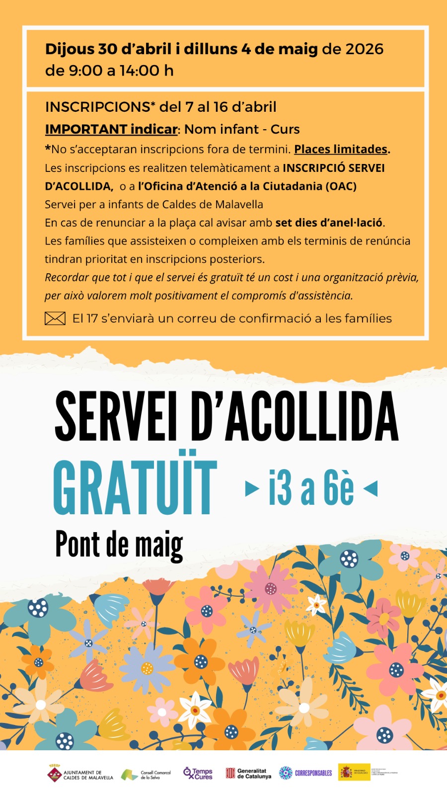 Servei d’acollida gratuït pel pont de maig