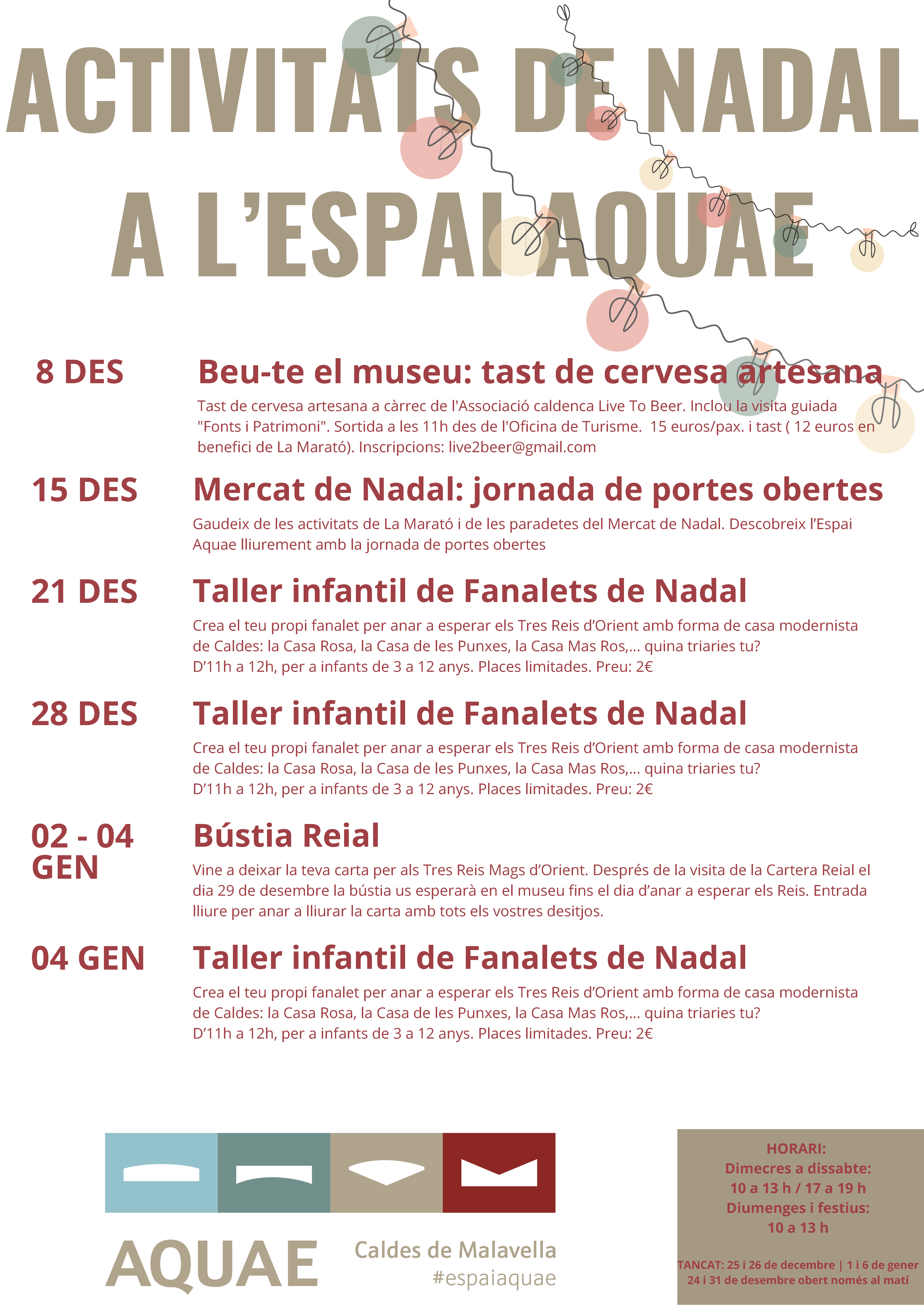 Ja es nota la proximitat de Nadal. Els llums estan penjats (però no encesos) i l’agenda cultural i d’oci del desembre va plena de propostes. L’inici oficial de l’època nadalenca serà el 6 de desembre, quan s’il·lumini la decoració dels carrers de Caldes de Malavella en un acte on també hi haurà xocolata calenta per a tothom. A partir d’aquí, tant l’Ajuntament com les entitats del poble es bolcaran en oferir un munt d’activitats per petits i grans.