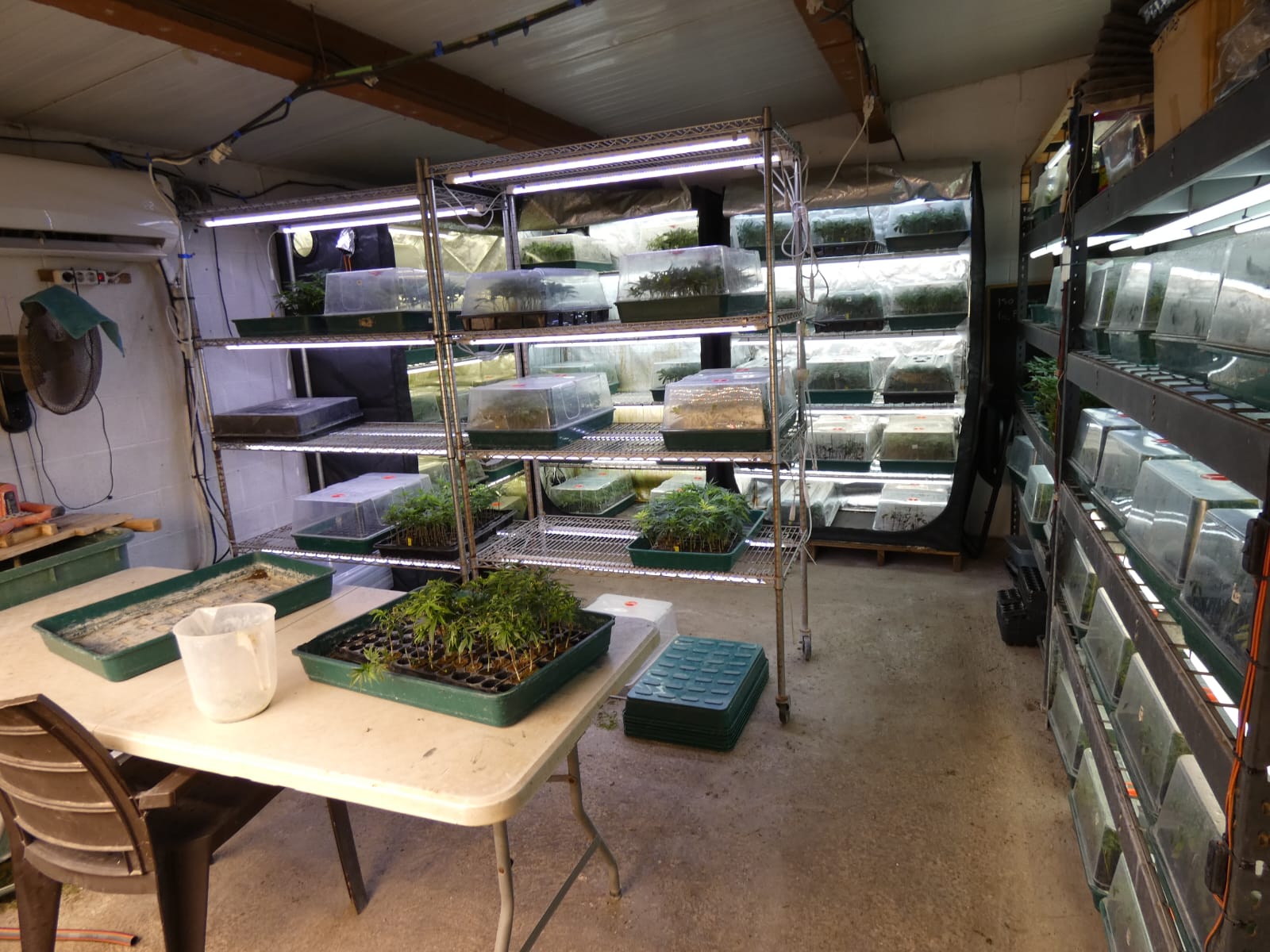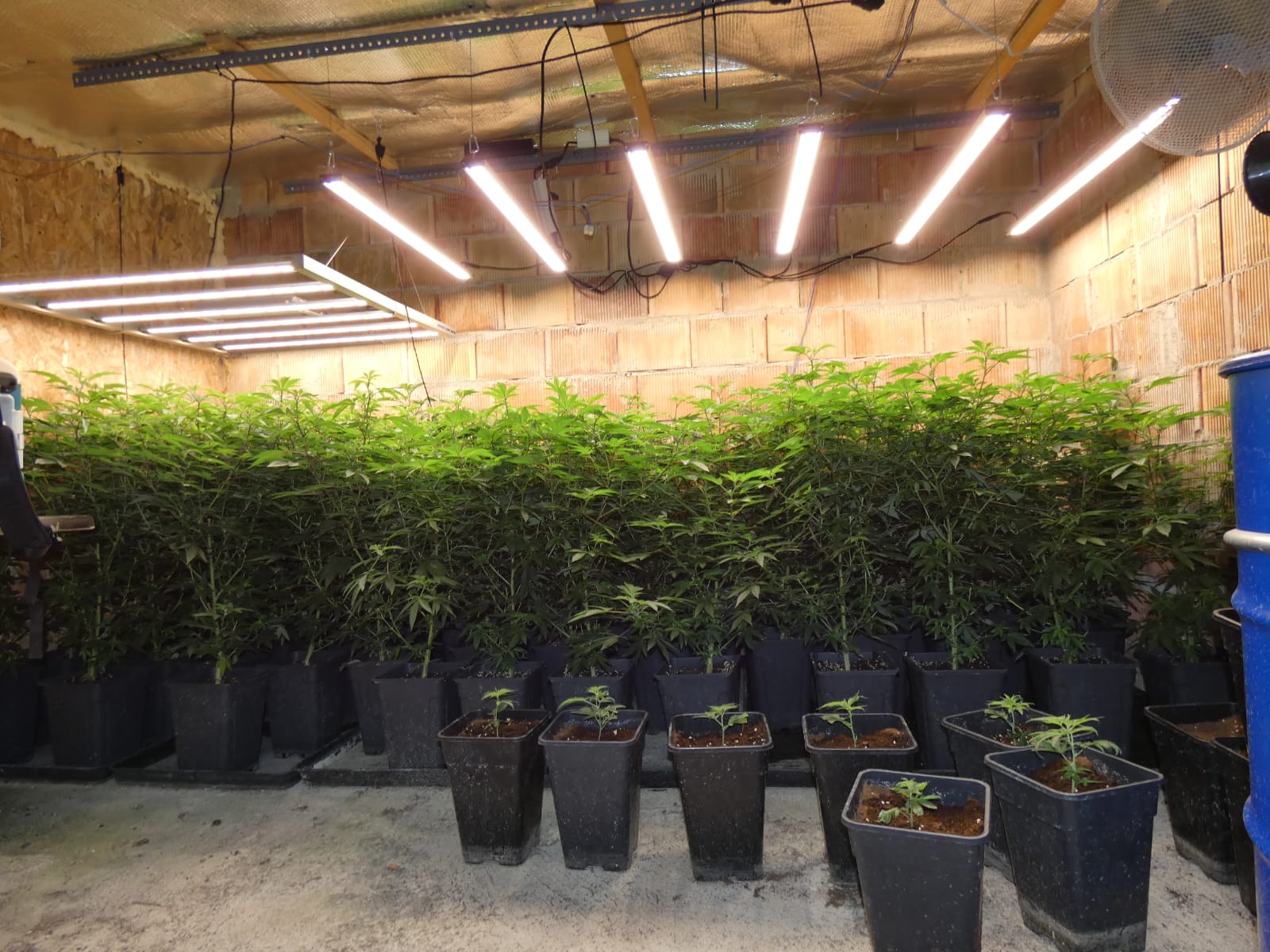 La diligència d'entrada i escorcoll va finalitzar amb la confiscació de plantes de marihuana en diferents fases de creixement, al voltant de 8.000 esqueixos i estris per emmagatzemar i manipular les plantes i fer recompte de diners.