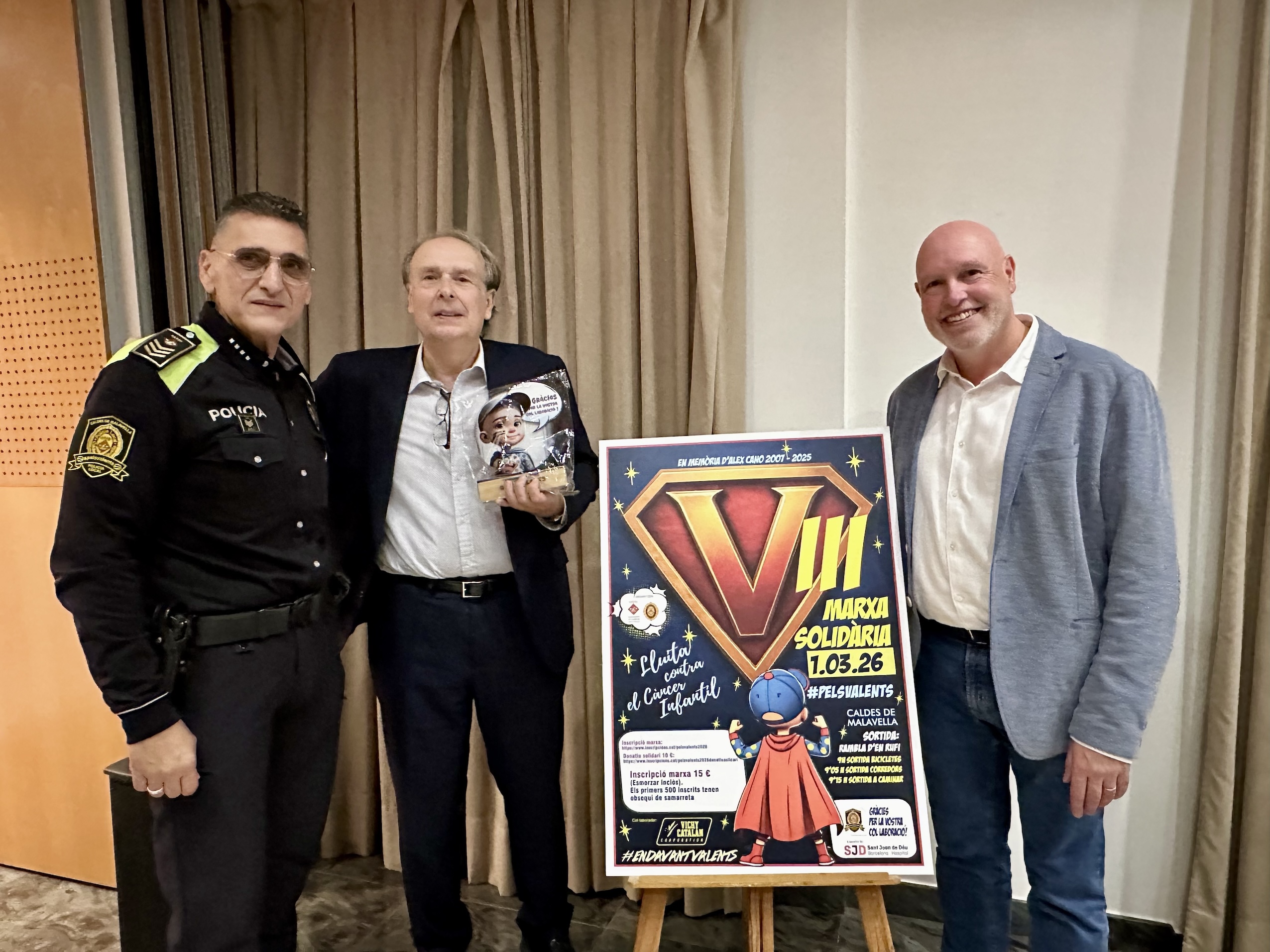 Xavier Muñoz, sotsinspector de la Policia Local i organitzador de la Marxa Vels Valents va aprofitar la presentació per explicar que "La Marxa Vels Valents és molt més que un esdeveniment esportiu; és un símbol de solidaritat i compromís. Cada any veiem com el poble de Caldes, les entitats i els patrocinadors s’uneixen per una causa que ens toca a tots: la lluita contra el càncer infantil. Sense aquest suport, seria impossible assolir els objectius que ens proposem. Gràcies a tots per fer-ho possible." A més va declarar que "La recerca és l’únic camí per donar esperança als infants que lluiten contra el càncer. Cada euro, i que estem a tocar del milió, que recaptem és una inversió en vida, en futur i en oportunitats per a les famílies. Aquesta edició és especialment emotiva perquè la dediquem a un dels nostres valents, a l’Àlex, que avui no és amb nosaltres però que ens inspira a seguir endavant amb més força que mai. Aquesta marxa és el nostre homenatge i el nostre compromís amb tots els nens i nenes que continuen lluitant."