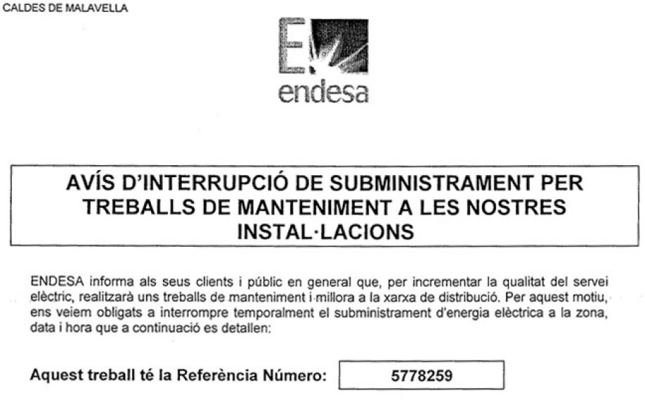 INTERRUPCIÓ PROGRAMADA DEL SERVEI D'AIGUA POTABLE EN ELS SEGÜENTS CARRERS: