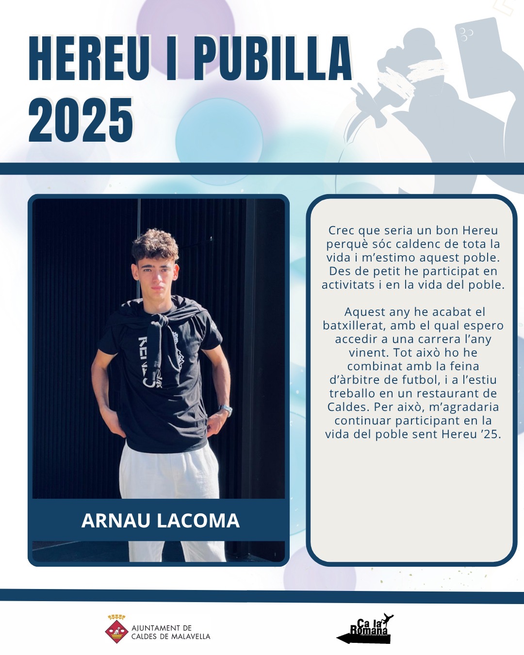 El pròxim 3 d’agost, en el marc de la Festa Major de Caldes de Malavella, se celebrarà la tradicional votació popular per escollir l’Hereu i la Pubilla del municipi. Aquesta activitat, que s'ha consolidat com una mostra viva del patrimoni cultural local, continua sent possible gràcies a la implicació activa del jovent i de tota la comunitat.