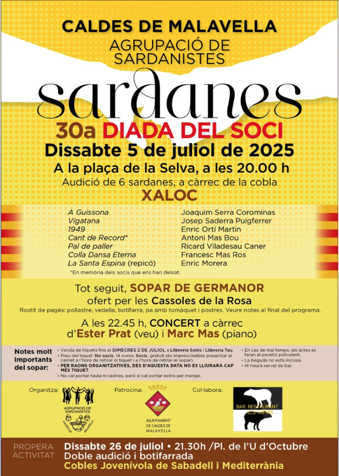 Per a participar-hi caldrà inscriure’s a l’enllaç que estarà disponible a www.caldesdemalavella.cat a partir de dilluns 7 de juliol.
